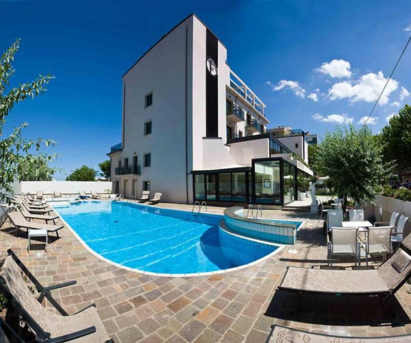 Hotel a due passi dalla spiaggia di Cattolica con una grande piscina di 150 mq e area solarium.